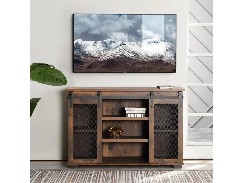 Ce superbe meuble TV a été conçu dans un souci de praticité et de fiabilité. Construction en bois massif, poignées en métal rustique, panneau supérieur épais et étagère de soutien en font un ajout vraiment idéal à votre espace de vie.