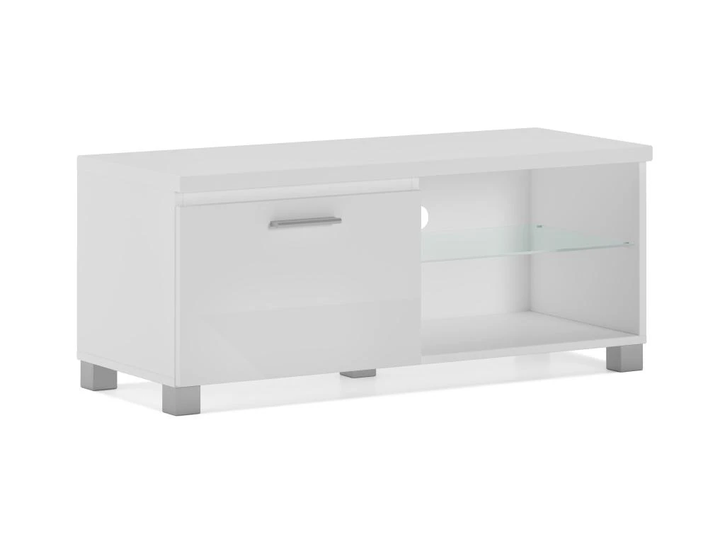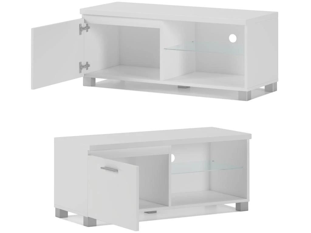 Module TV compose dâune porte avec une poignee discrete et elegante, il a aussi une etagere en verre oĂč vous pourrez mettre tous vos appareils electroniques comme le lecteur DVD, chaĂźne Hi-Fi, TV, etcâŠ