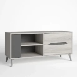 - Fabriqué avec agglomére de grande densité, mélamine de grande qualité et de longue durabilité. Couleur Chêne Clair et Gris, facile à assortir avec le reste de décoration.