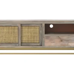 Vous souhaitez apporter à votre déco une touche chaleureuse de mobilier délicatement patiné ? Alors, vous ne pouvez pas trouver mieux que notre meuble TV Sangia en bois et jute.