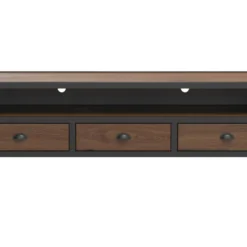 Réalisé en métal et bois de cèdre recyclé, le meuble TV Shelby est une pièce unique. L’avantage du meuble Shelby est sa faible profondeur (40 cm). Il sera facile à installer en face d’un canapé ou d’un fauteuil pour profiter de moments de détente. Le meuble de télé Shelby propose également des espaces de rangement avec ses trois tiroirs (49 x 33,5 x 14 cm) pour disposer des objets que l’on veut avoir à portée de main. La présence d’une niche toute en longueur (154 x 38 x 14,5 cm) et d’un passe-câble permettent également de positionner facilement du matériel audiovisuel : console de jeu, box TV, enceinte…