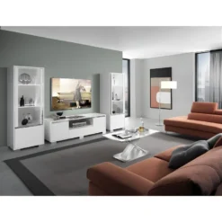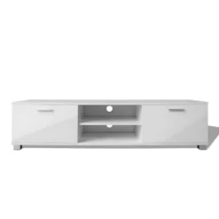 Meuble Télé Buffet Tv Télévision Design Pratique 2 Pcs Aggloméré 12 Cm Blanc Brillant 2502080