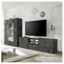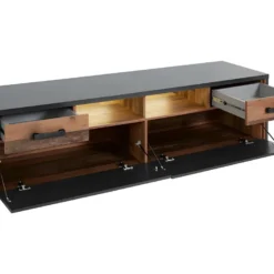 Meuble TV 190 Cm – Avec LED Et Espace D’exposition En Verre – Style Campagnard – Gris & Naturel