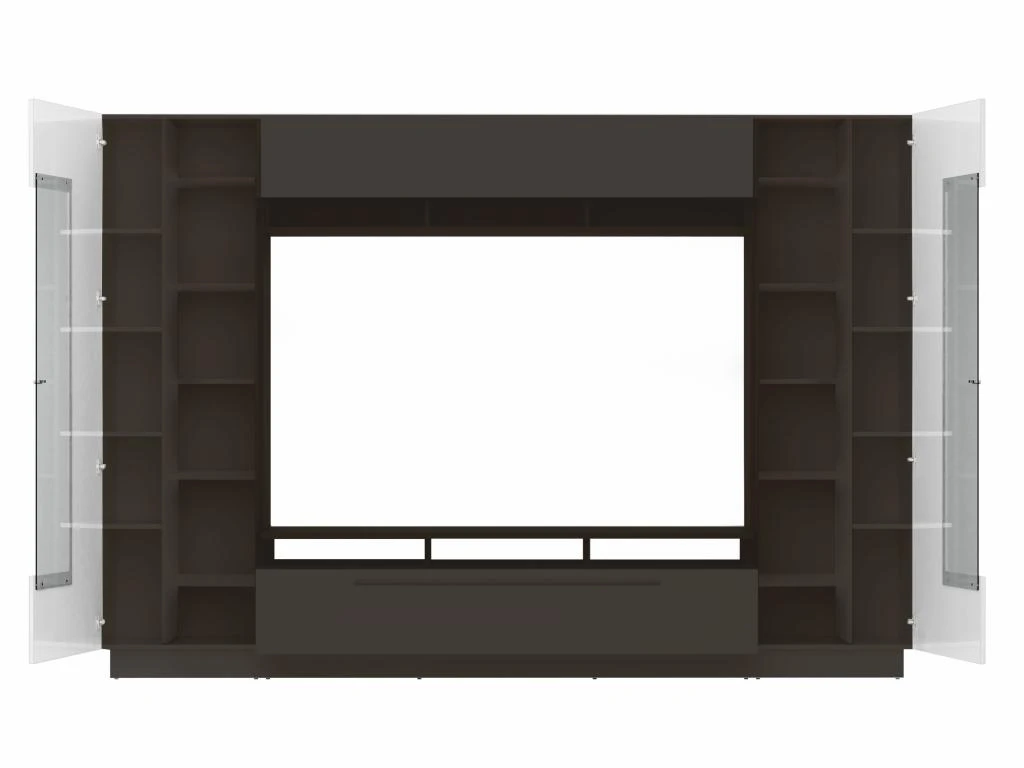 Les LEDs finement disposées sur les étagères ainsi que les portes laquées de ce mur TV lui confèrent un aspect tendance et élégant. Grâce à son design épuré, il épousera parfaitement les formes de votre télévision et des objets que vous disposerez sur ses nombreuses étagères.