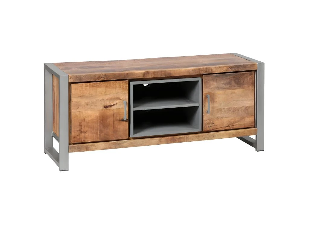 Meuble TV 2 Portes Coulissantes Bois et Acier Patiné de la gamme Palissa.