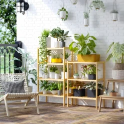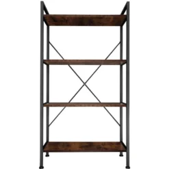 Grande étagère Bibliothèque Au Look Industriel/ Vintage 4 Niveaux 121,5 Cm Marron 08_0000278
