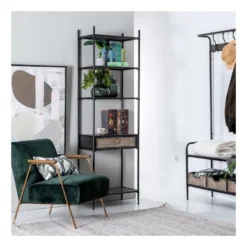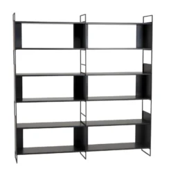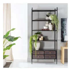ALIDA – Étagère Marron 2 Tiroirs Et 7 Niches Teck Recyclé Acacia Mahogany Recyclé Et Métal Noir