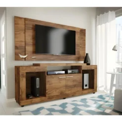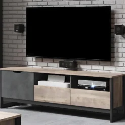 Meuble Tv Rhin Design 100 % Panneau De Particules Plaqué Mélaminé En Couleur Nogal, 120x45x35cm
