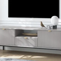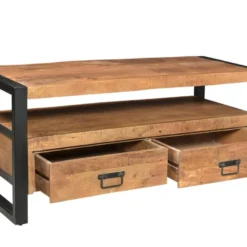 Meuble TV Avec 2 Portes Et 2 Niches – Bois De Sheesham Et MĂ©tal – Coloris : Naturel – ZELICINA