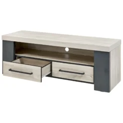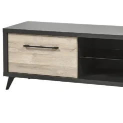 Kalaotek , Meuble TV Rectangulaire, Deux Portes, Une étagére En Bois De Teck Et Mindi , Naturel