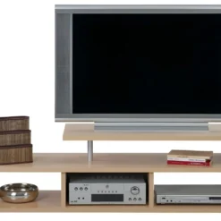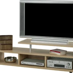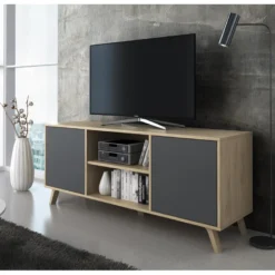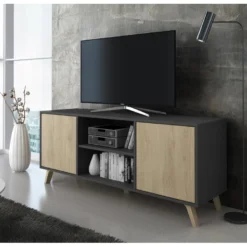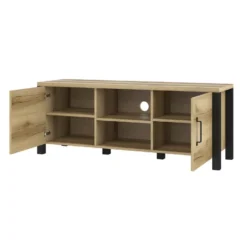 Meuble TV 160cm Avec 2 Portes Et 3 Compartiments Pour Chambre Ou Salon – Bois RĂ©tro – Naturel