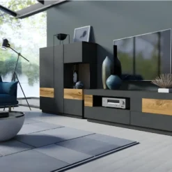 Meuble TV 160cm Avec 1 Tiroir Et 2 Portes Pour Chambre Ou Salon – Bois RĂ©tro – Noir & Naturel