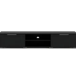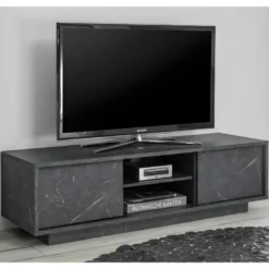 Meuble TV Design PARIS-HIT 140 Cm, 2 Portes Et 2 Niches, Coloris Noir Mat Et Noir Brillant