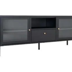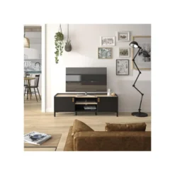Meuble TV Industriel SPEBO, 140 Cm, 2 Portes Et 1 Tiroir, Coloris Noir Mat Et ChĂȘne Wotan.