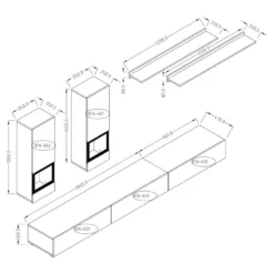 Ensemble Meubles De Salon Design Collection RAMOS. Coloris ChĂȘne Et Noir. LED IntĂ©grĂ©es.