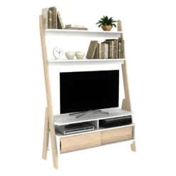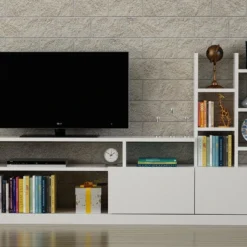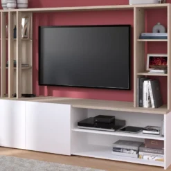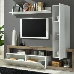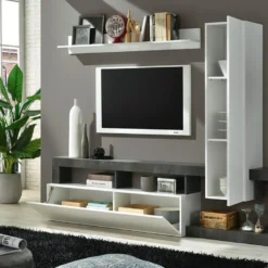 Meuble TV GALINO E Design, Coloris Blanc Et Noir. Meuble Moderne Et Tendance Pour Votre Salon.