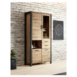 Vitrine Haute XL Collection BOWIE. Couleur ChĂȘne Et Noir. LED Incluses