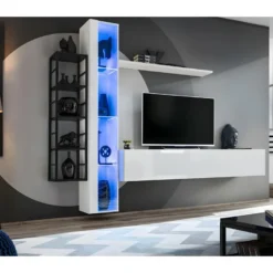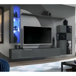 Vitrine Suspendue Grise Petit Modèle Avec 1 Porte Vitrée Et éclairage LED Inclus. Collection SWITCH.
