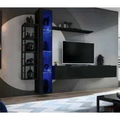 Vitrine Suspendue Noire Petit Modèle Avec 1 Porte Vitrée Et éclairage LED Inclus. Collection SWITCH.
