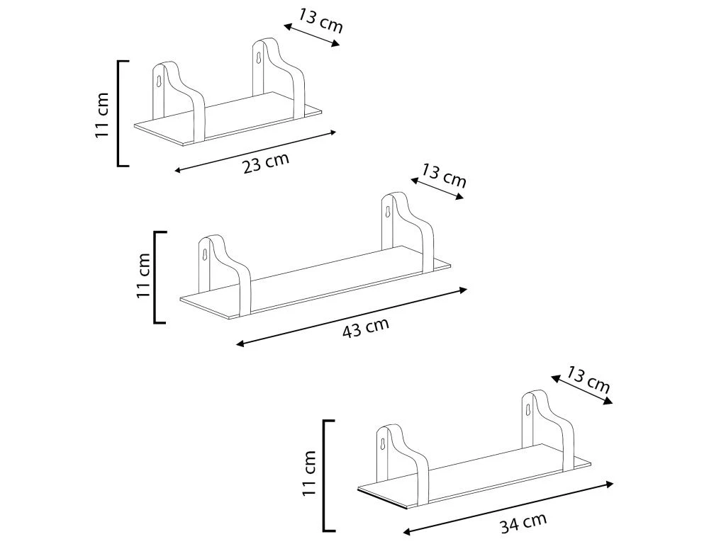 · Etagère murale moyenne: Hauteur 11 cm, Longueur 34 cm et Largeur 13 cm