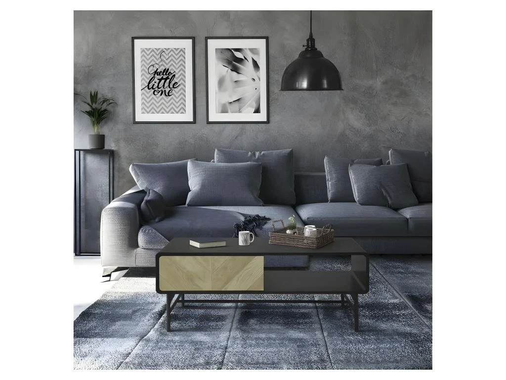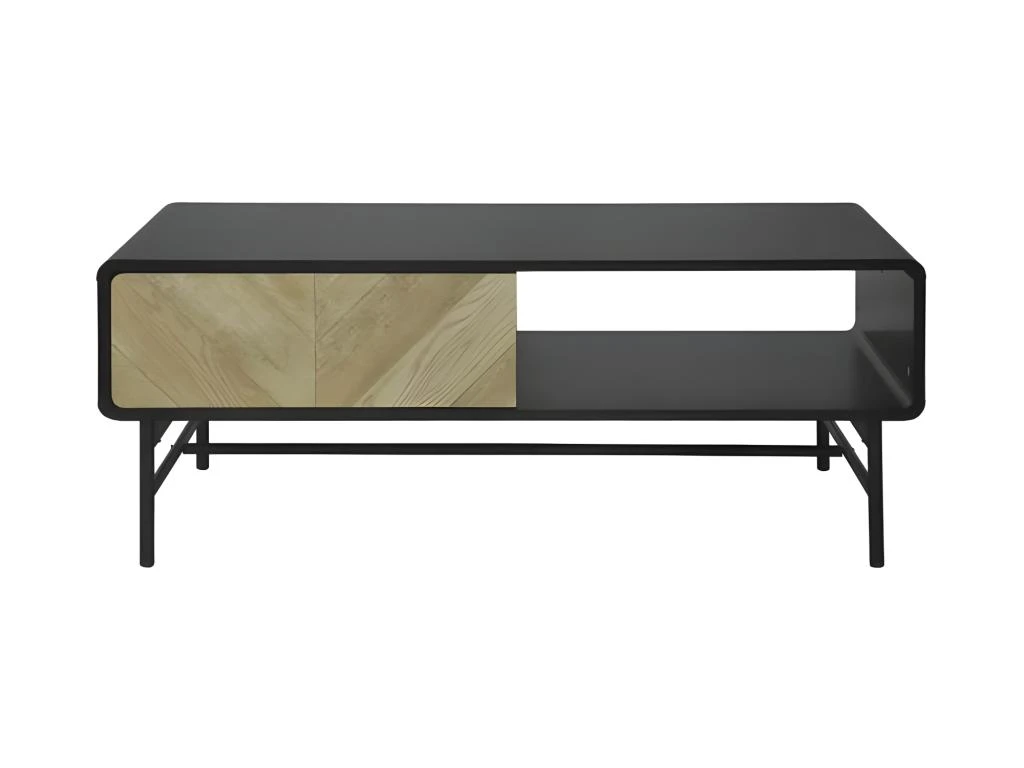 Table basse 1 tiroir – Bois et mĂ©tal noir – L 110 x P 60 x H 42 – BROOKLYN