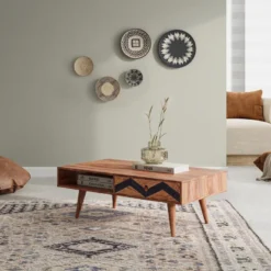 Le bois de sheesham que possède la table basse PALONI propose l’aspect brut que l’on recherche dans une décoration aux inspirations naturelles. Il est aussi très solide, ce qui est gage de qualité et de durabilité. Cette table basse, en plus de son esthétique, est munie de deux beaux rangements, un élément important quand on souhaite organiser au mieux l’espace !