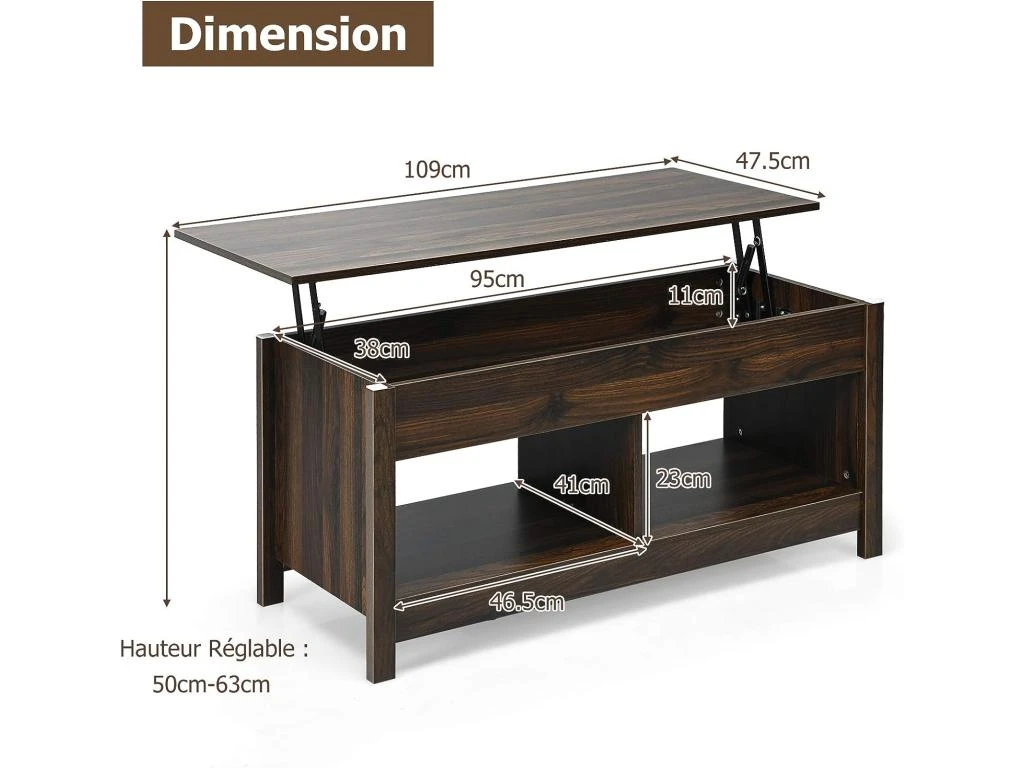 - 【Grand compartiment de rangement et étagères】Dotée d’un grand compartiment, la table basse offre un espace de rangement caché et permet de garder vos objets bien ordonnés. Deux étagères distinctes permettent de ranger et d’exposer de divers articles. De plus, le plateau spacieux permet de mettre à portée de main les objets dans la maison ou le bureau.