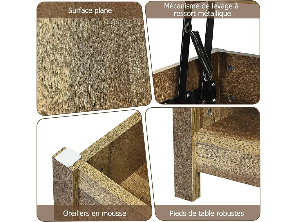Notre table basse avec plateau relevable vous offre un espace de travail et de rangement confortable. Dotée d’étagères ouvertes et de compartiments cachés, la table offre suffisamment d’espace pour un usage quotidien tout en vous permettant de ranger vos affaires. Une surface réglable en hauteur vous permet de travailler ou de boire une tasse de café à la hauteur qui vous convient le mieux. La conception avec plateau relevable permet également de tirer parti de l’espace limité et de créer un espace de travail idéal.
