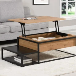 Une table basse moderne et optimale, LUTESA répondra à vos attentes ! Une fois le plateau relevé, découvrez un bel espace de rangement qui pourra s’avérer très pratique quand on souhaite optimiser l’espace dans une petite pièce. De plus, grâce à son plateau relevable, vous pourrez déguster un bon repas devant votre série préférée !