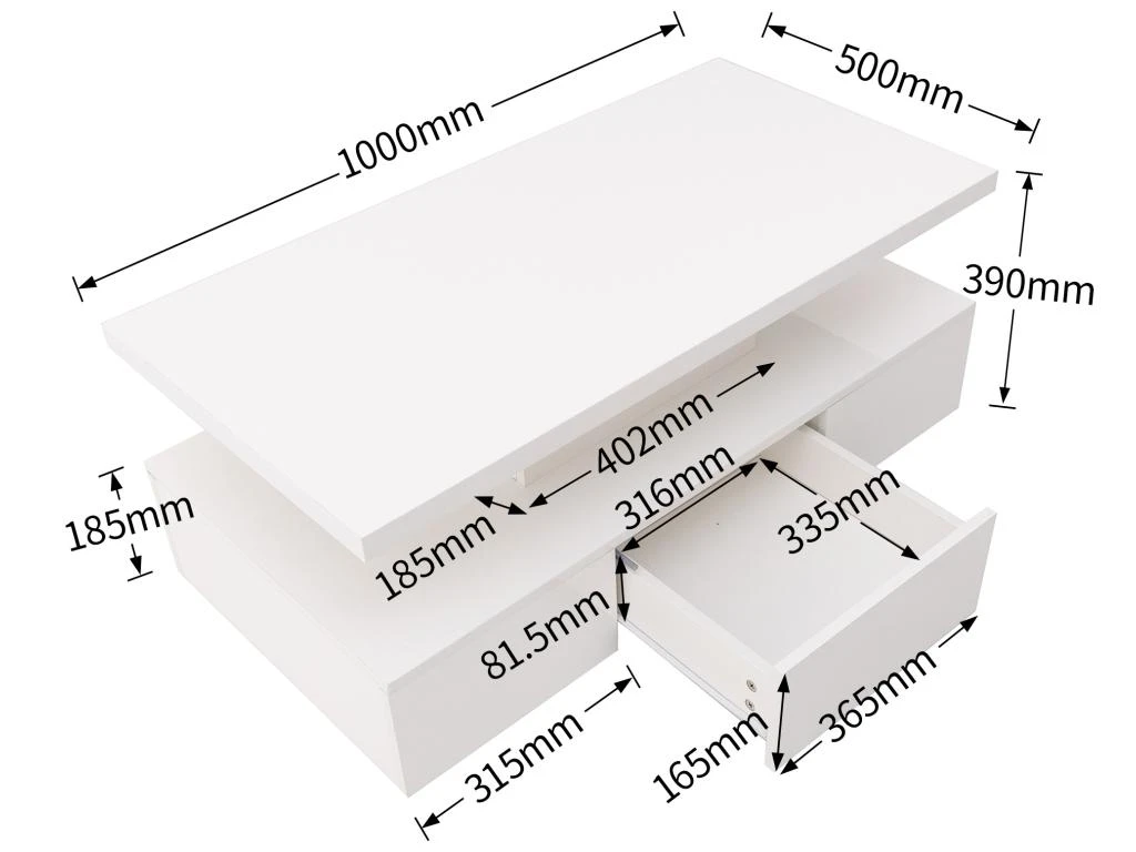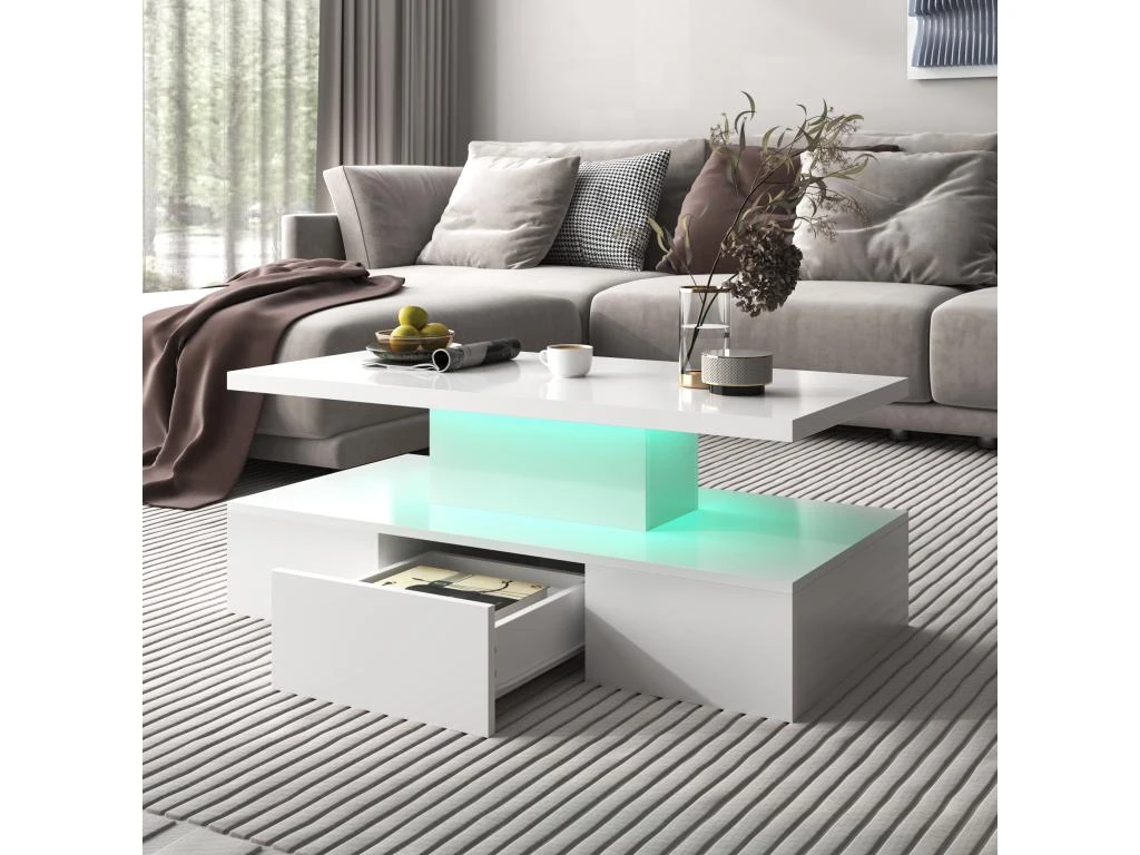 Beaucoup d’espace : cette table comporte deux niveaux pour les tasses à café, les décorations et les livres, le tout à portée de main, et des LED intégrées pour égayer votre salon.