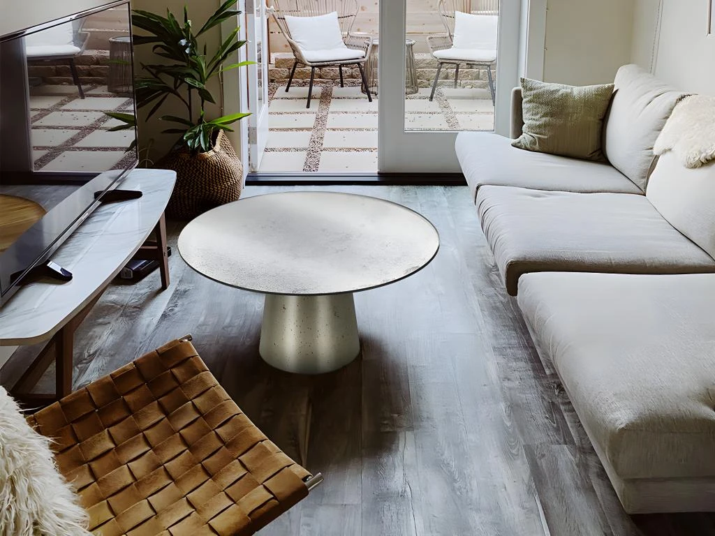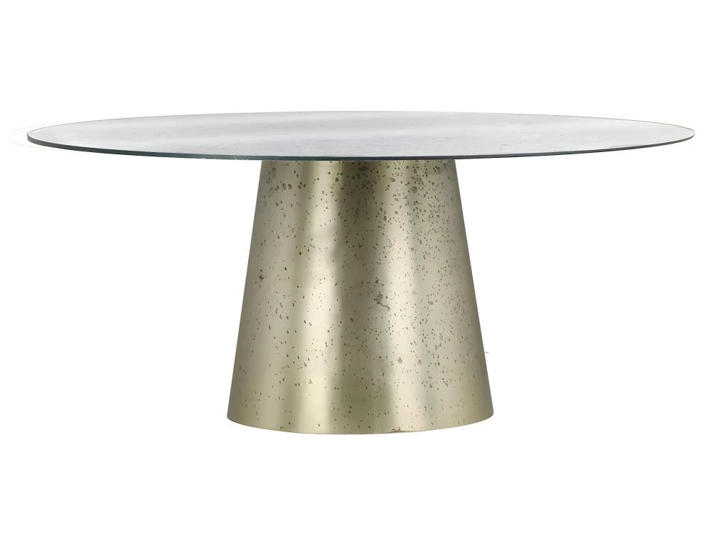 Succombez au design original de la table basse CORIANE. Dotée d’un pied central doré et d’un plateau effet miroir vieilli, elle deviendra avec son style brut et élégant, la pièce maîtresse de votre salon.