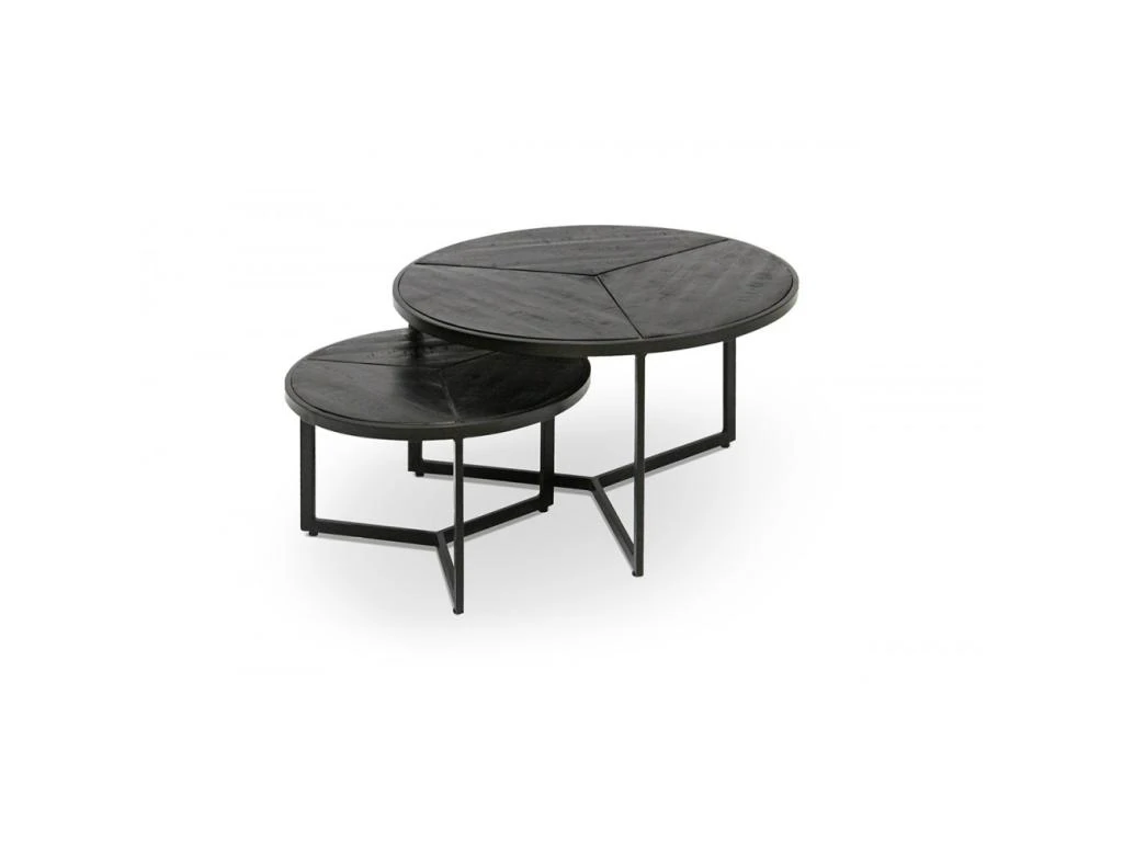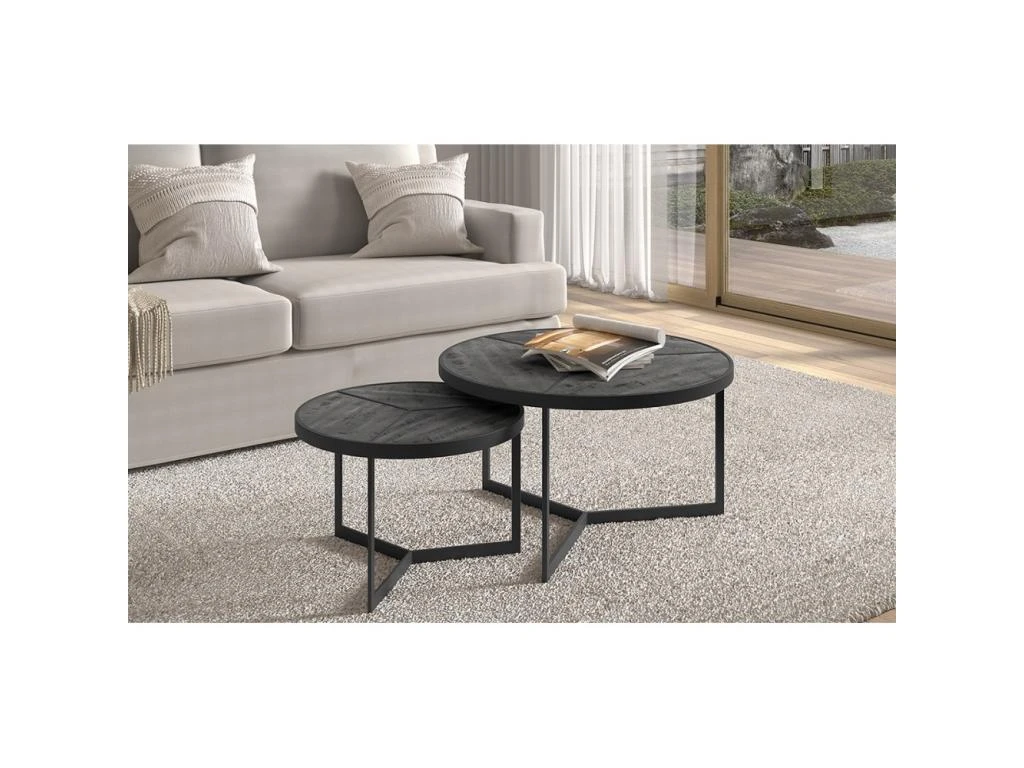 – CARACTÉRISTIQUES : 2 Tables basses gigognes rondes, structure métal noir.