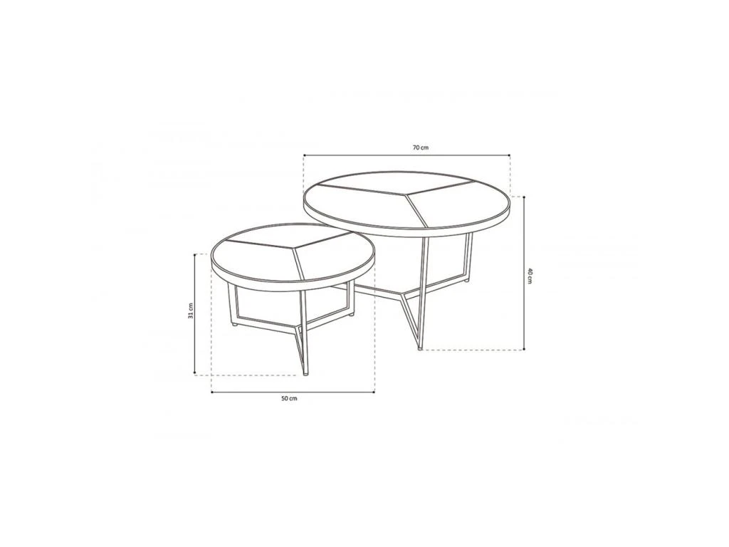 * Table intermédiaire : Hauteur : 31 Diamètre : 50cm.