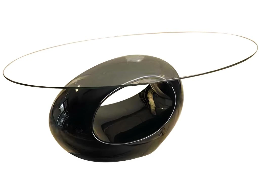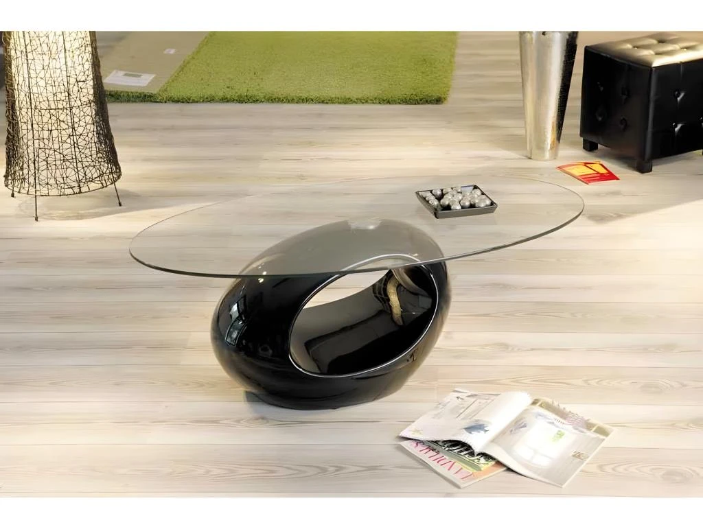Seslignes arrondieslui donnent un style unique et sabase ovale laquéeoffre à cette table basse un véritable design tendance.