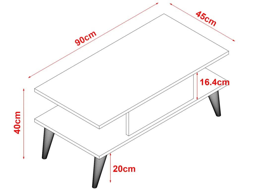 – distance entre le plateau et l’Ă©tagère : 16,4 cm