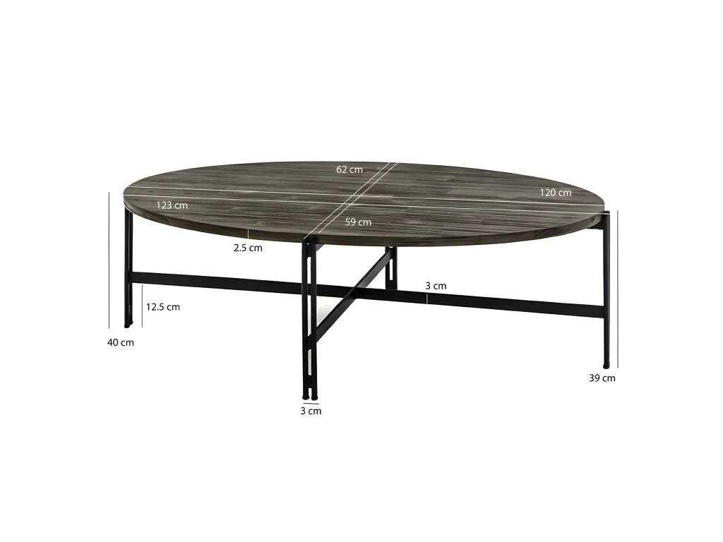 - DÉTAILS : Dimension plateau : Longueur 120 cm x Hauteur 2,5 cm x Profondeur : 59 cm.