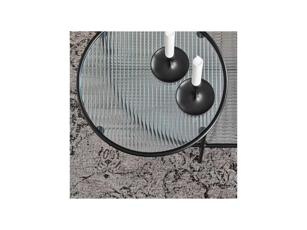 Mettant en avant une structure filiforme réalisée en métal laqué Noir cette table de salon très robuste est pourvue de plateaux en verre cannelé.