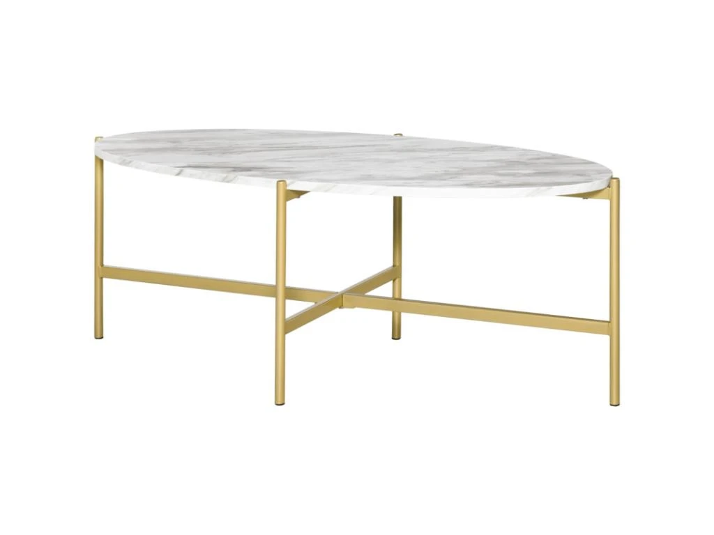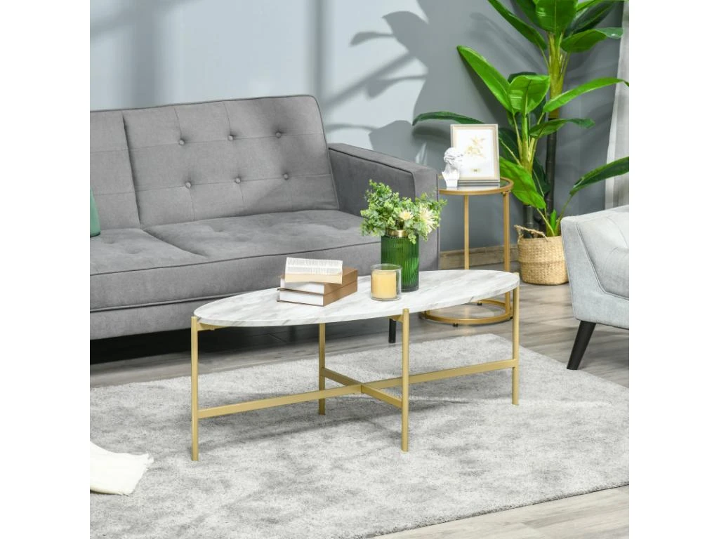 Très élégante dans un style art déco, cette table basse Michal de MYCOCOONING va apporter beaucoup de caractère à votre intérieur. C’est une subtile alliance entre la forme singulière ovale, les lignes épurées, l’aspect noble du marbre et la richesse du doré. Dans un salon, son grand plateau permet de partager un verre entre amis ou d’y déposer un objet de décoration, des livres ou les télécommandes. Les matériaux utilisés sont de première qualité comme le châssis en métal. Les patins antidérapants gardent la table basse en place sans risque d’abîmer les sols. L’entretien est facile et elle pourra facilement traverser les années sans s’abîmer.