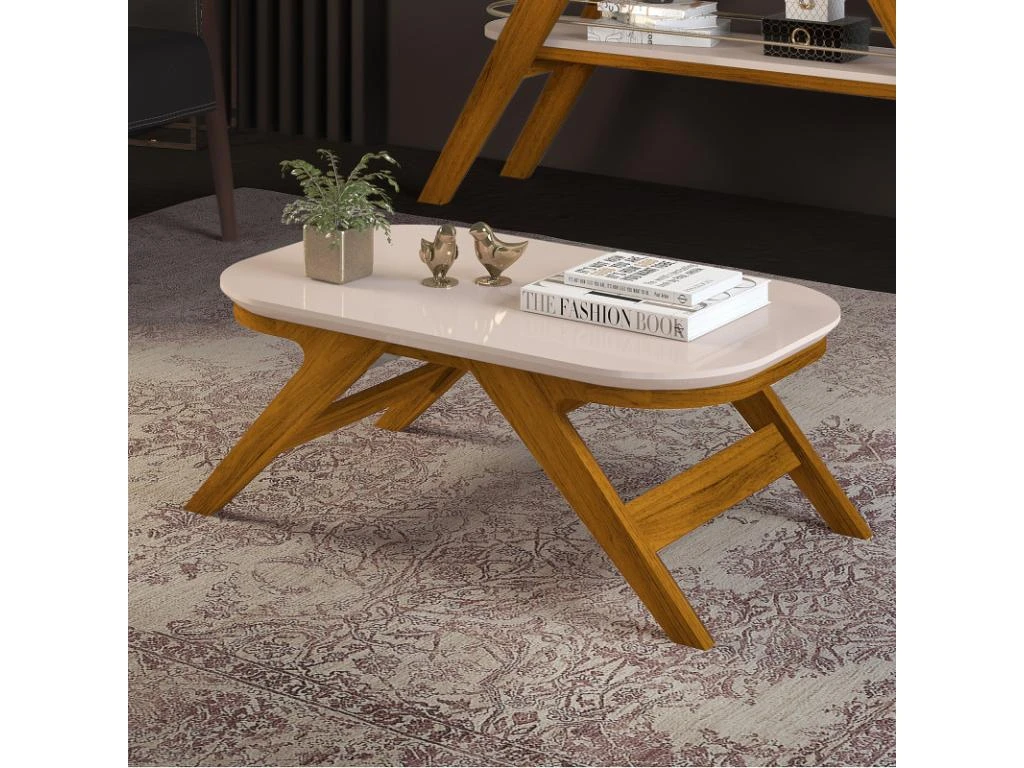 Table Basse DORIS Rectangle 90 cm Coloris Imitation Chêne + Blanc Ecru