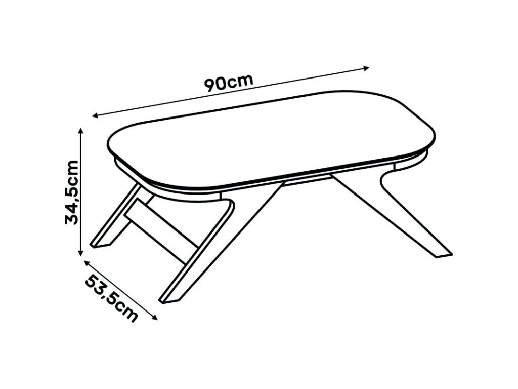 Longueur 90 cm x Hauteur 34.5 cm x Largeur 53.5 cm.