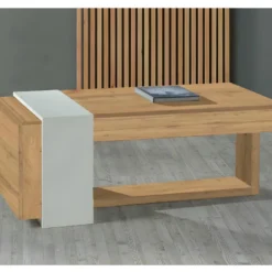 Le dessin moderne de cette table basse met en avant le mariage d’un revêtement chêne blond et de bois blanc.