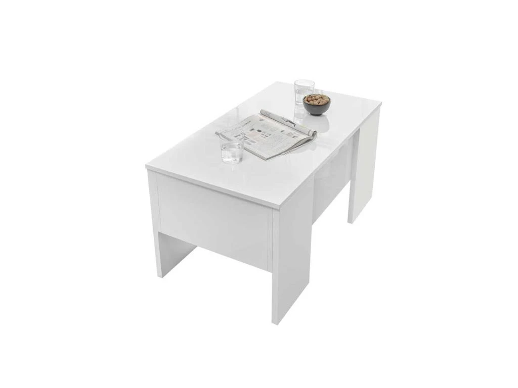 Une fois le plateau relevé vous pourrez profiter d’un plateau repas devant votre émission préférée, vous pourrez aussi ranger des revues ou aménager un espace bar dans le coffre de cette table de salon au design contemporain et indémodable.