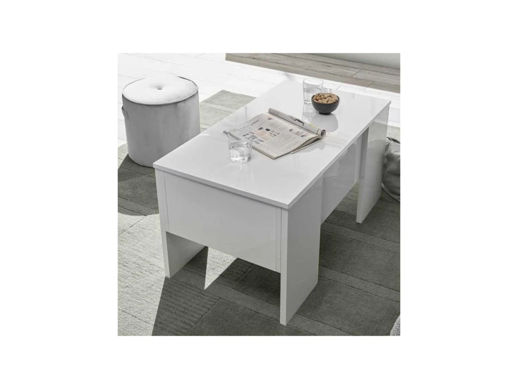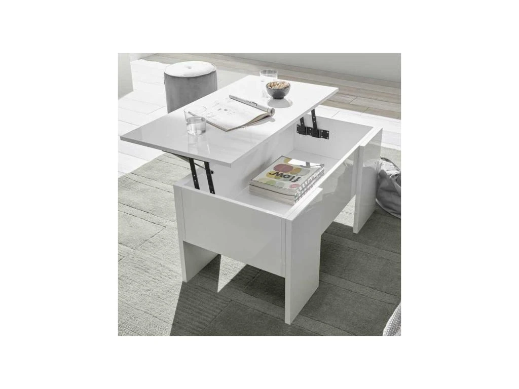 Gagnez de la place dans votre salon avec cette table basse relevable au design contemporain et au revêtement original.