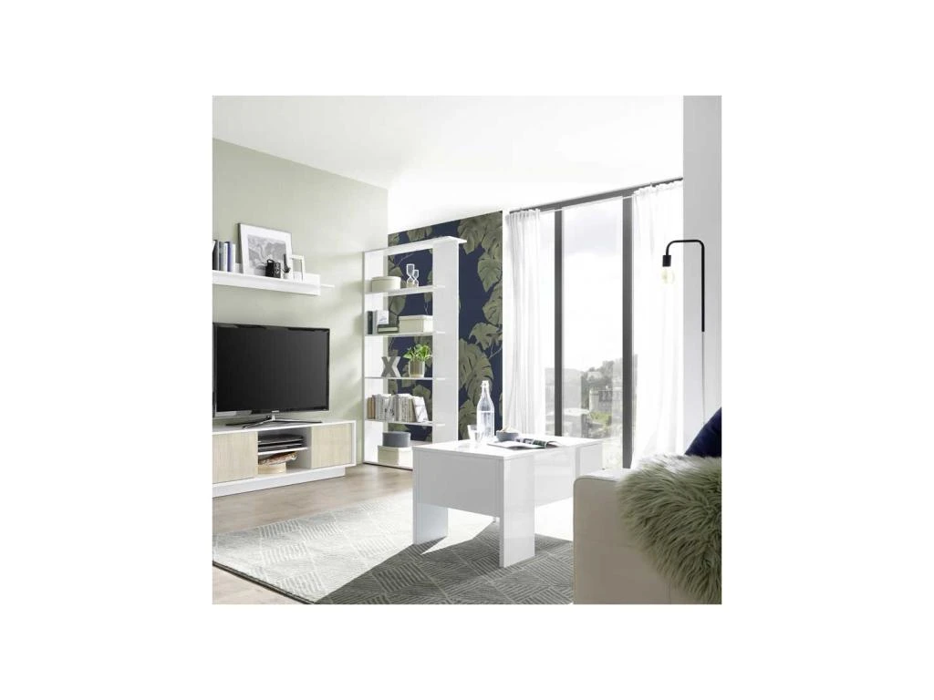 Cette table de salon sera facile à placer grâce à sa dimension contenue, elle offre en outre un espace de rangement accessible par le déploiement du plateau.