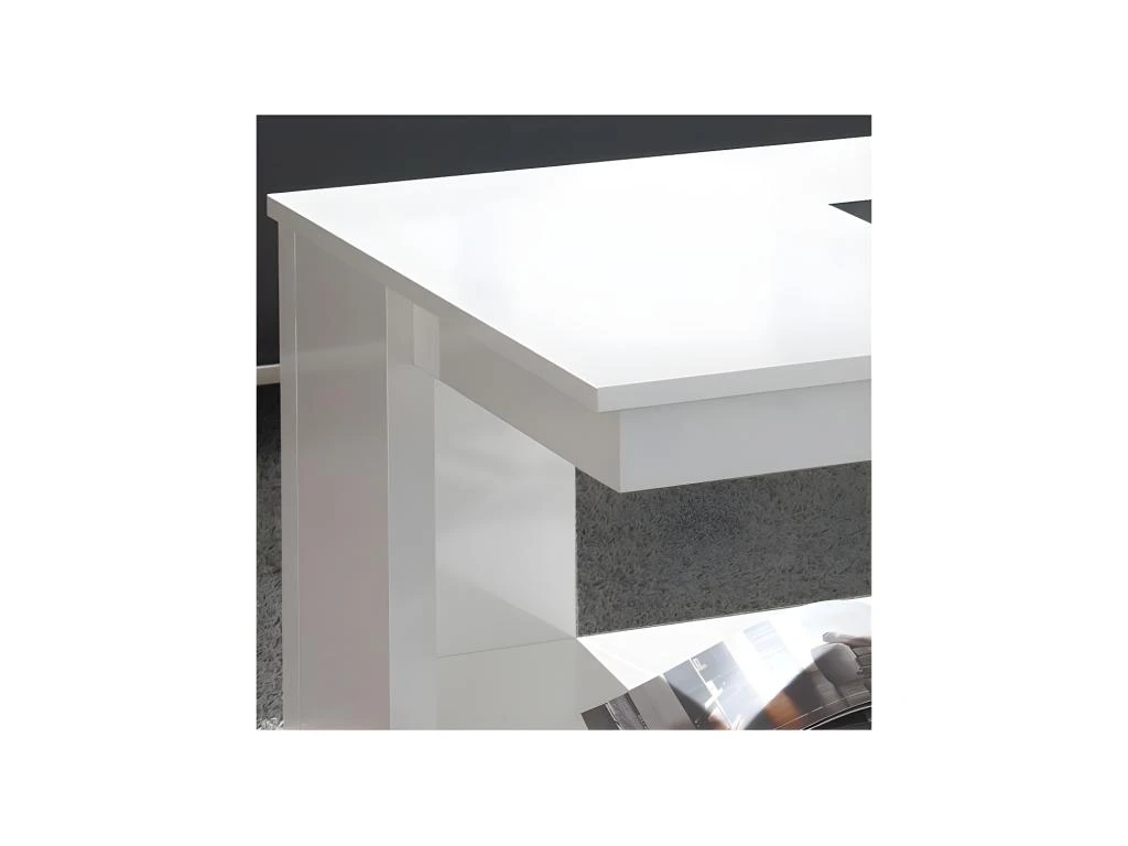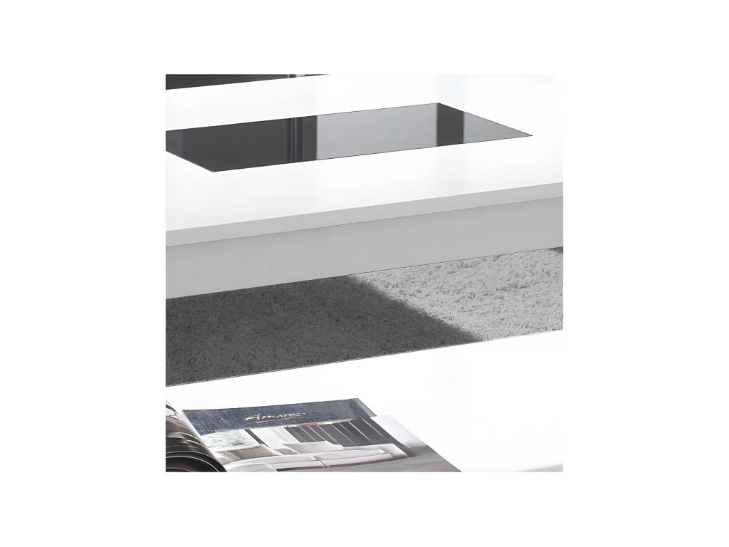 Cette table de salon dispose de lignes atypiques grâce à ses deux pieds angulaires tendances qui rendent cette table de salon aérienne et légère. La finition alliant laque blanche et verre noir rajoute un esprit contemporain à cette superbe table de salon atypique.