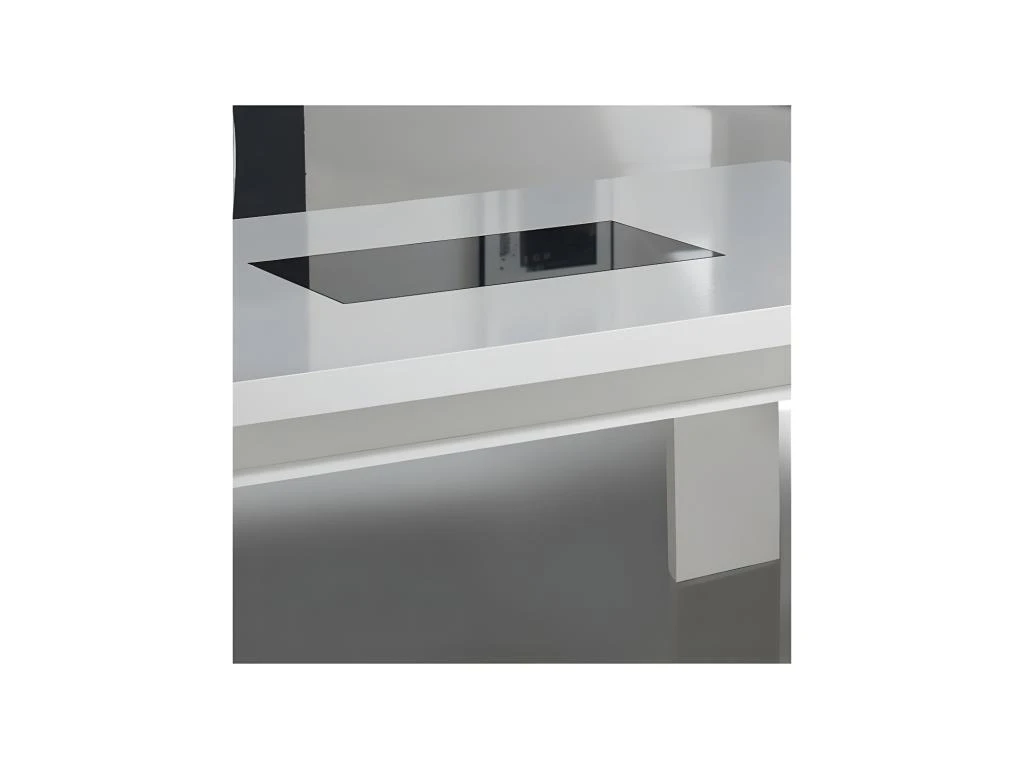 Cette table de salon au design moderne dispose d’une finition laquée blanche avec motif en verre noir. Les lignes aériennes et épurées de cette table lui donnent un style moderne.