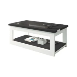 Apportez de la modernité dans votre salon avec cette table basse bois blanc et bois noir avec plateau relevable.