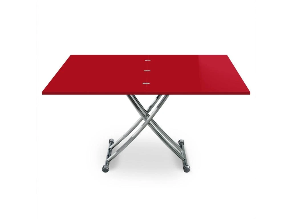 Bénéficiez d’une hauteur de table idéale en toutes circonstances grâce à son plateau relevable. Celui-ci, au revêtement rouge laqué ultra contemporain, se déplie pour vous offrir une plus grande surface de table. Cette belle table basse convertible est réhaussable grâce à une simple poignée et à son système de roulettes sur ses 4 pieds.