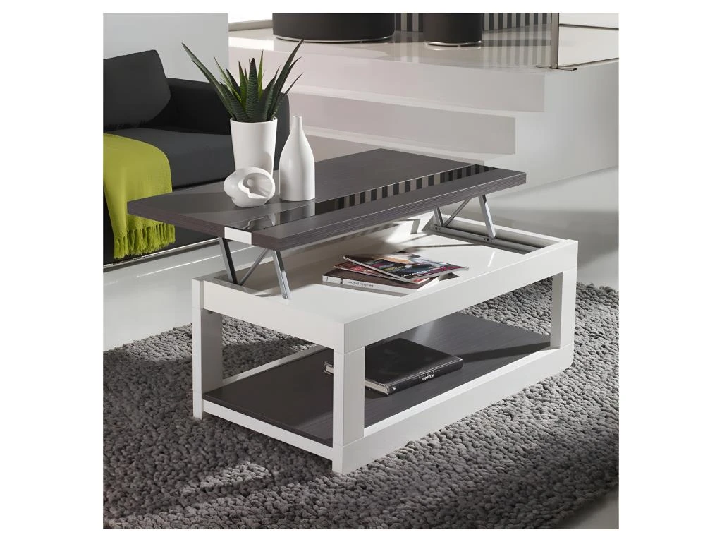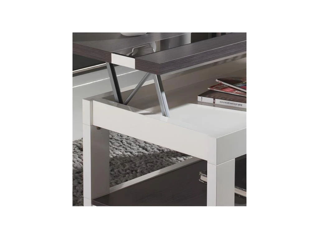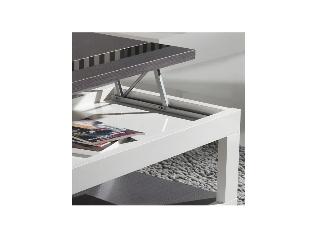 Le dessin moderne de cette table basse vous permet de la loger dans votre salon en conservant une esthétique légère grâce à la combinaison de la laque blanche et du plateau relevable en placage de bois couleur cendre.
