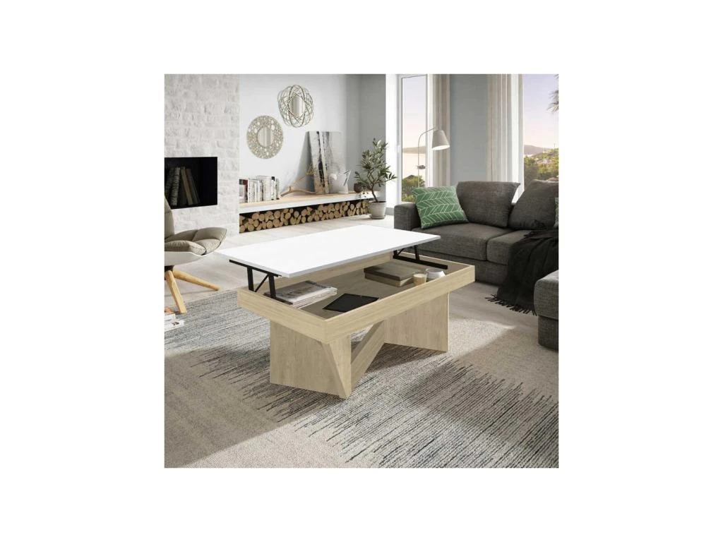Le mariage d’une finition Chêne blond et d’un plateau façon bois blanc offre une signature visuelle exclusive à ce meuble à la très belle qualité perçue. Vous pourrez intégrer cette table basse à un ameublement moderne mais aussi à du mobilier plus classique.